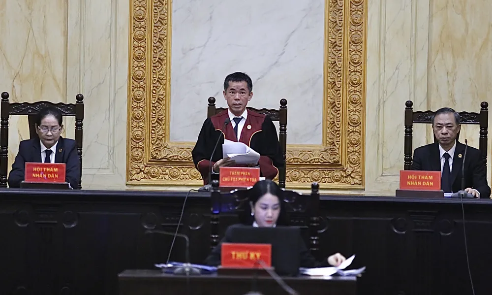 Chủ toạ phiên toà đọc toàn văn bản án. Ảnh: HOÀNG GIANG
