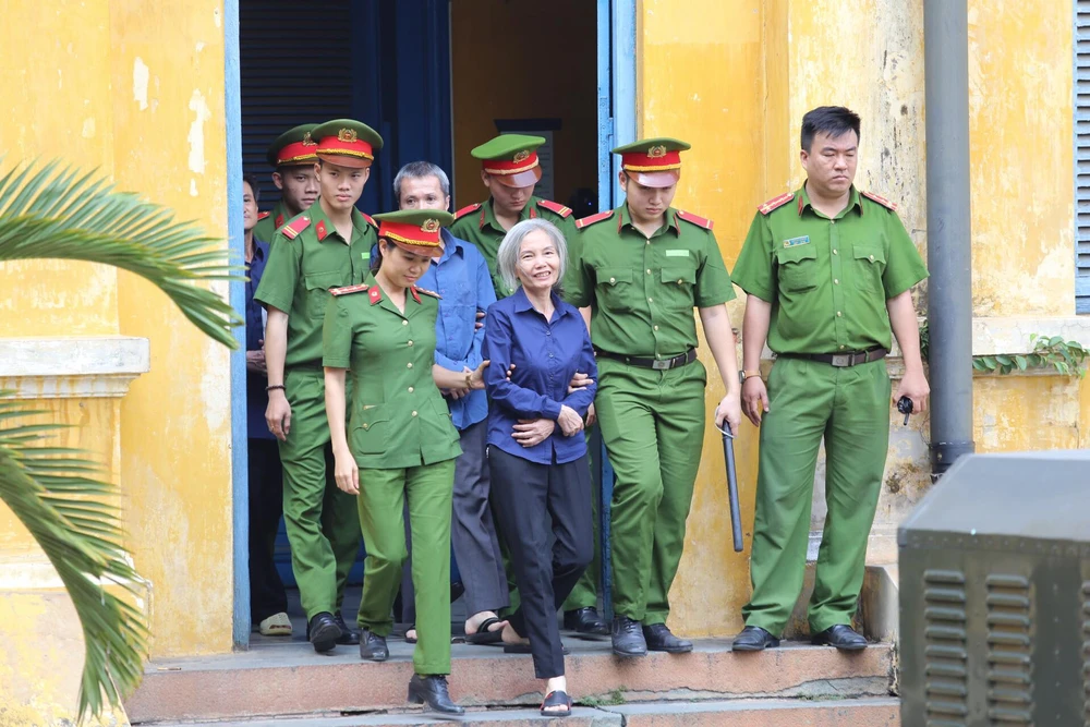Bị cáo Nguyễn Thị Kim Xuyến tươi cười khi rời toà. Ảnh: Hoàng Giang