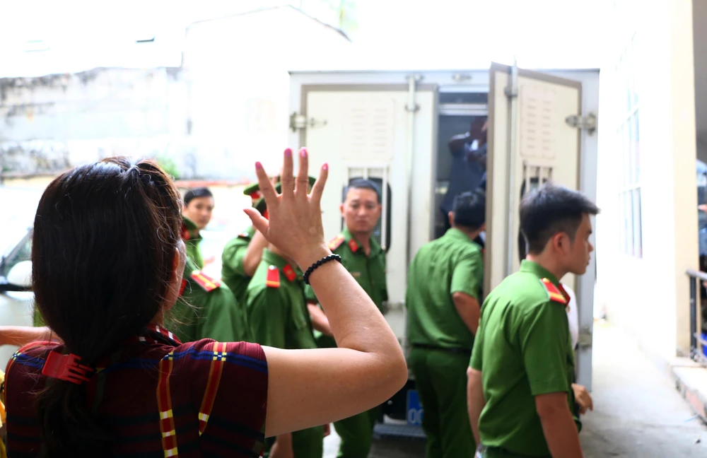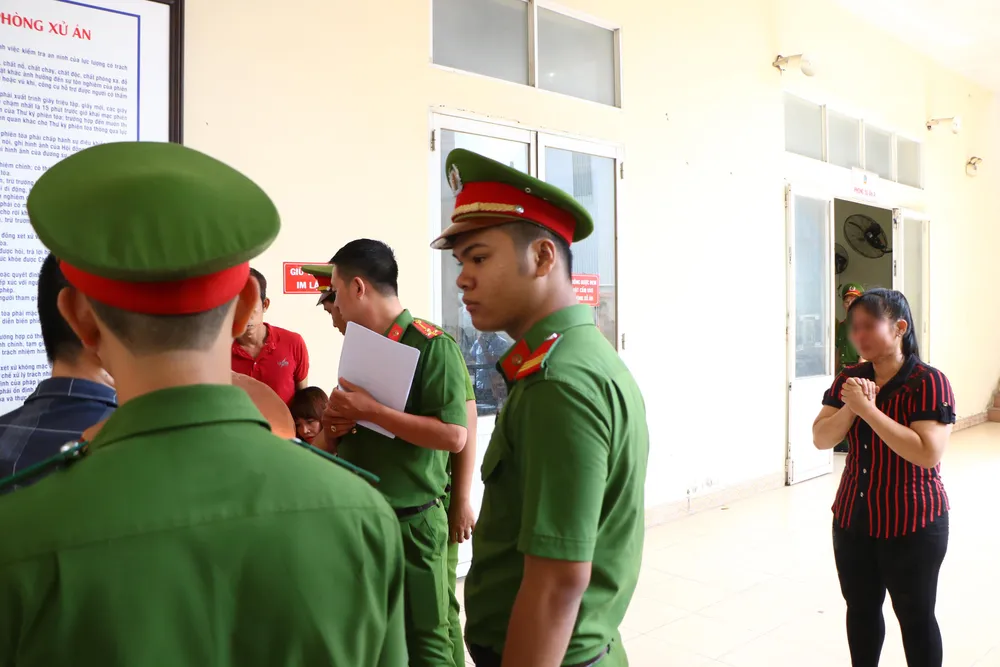 Mẹ của bị cáo Huỳnh Minh Trí khóc nức nở nhìn con từ phía xa.