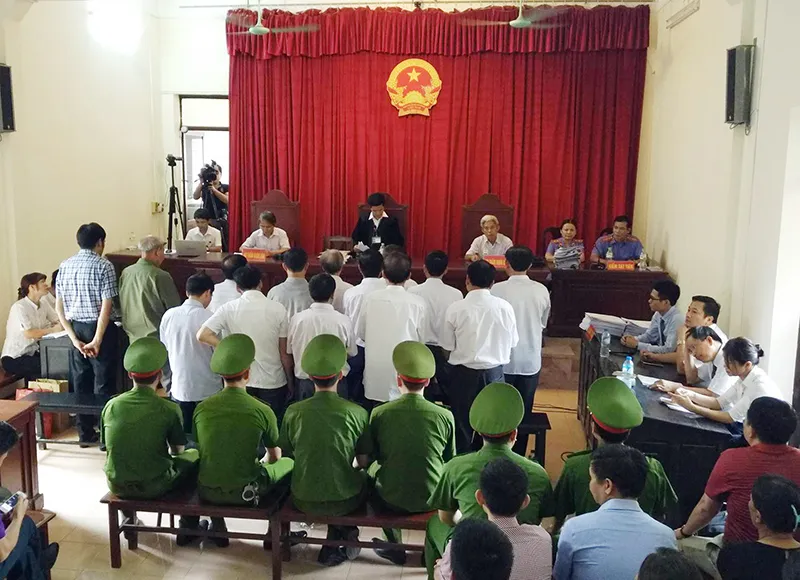 Đúng 14 giờ, chủ tọa đã thay mặt HĐXX tuyên án đối với 14 bị cáo. Trong đó, 10 bị cáo là cán bộ xã Đồng Tâm bị tuyên án về tội lợi dụng chức vụ, quyền hạn trong khi thi hành công vụ, bốn bị cáo là cán bộ huyện Mỹ Đức bị tuyên án về tội thiếu trách nhiệm gây hậu quả nghiêm trọng”.