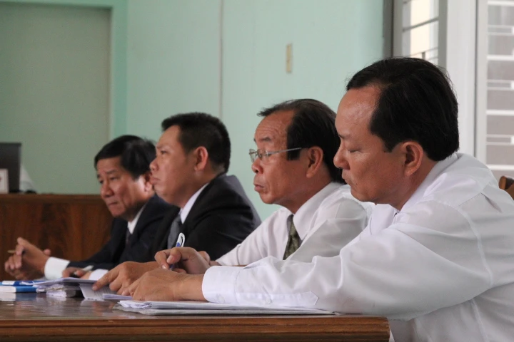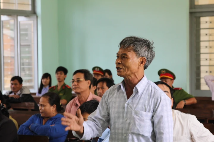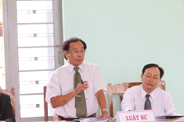 Luật sư Thiện tham gia xét hỏi Ông Bùi Ngọc Thành, nguyên Phó công an xã Sông Bình trả lời câu hỏi của Luật sư