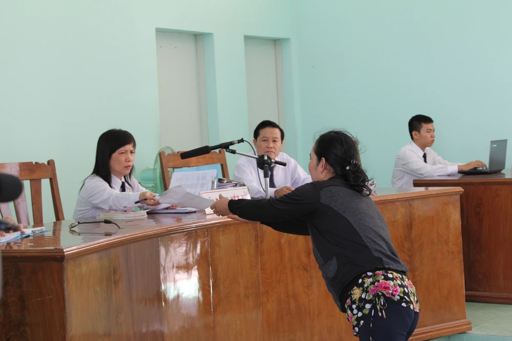 Người bị hại Lê Thị Kim Y tham gia phiên tòa. Ảnh Hồng Tú