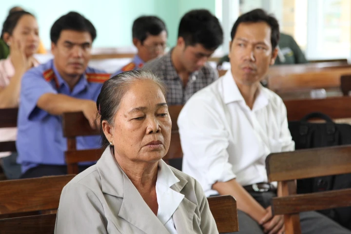 Bà Văn Thị Ỏn, mẹ bị cáo tham dự phiên tòa. Ảnh: Hồng Tú