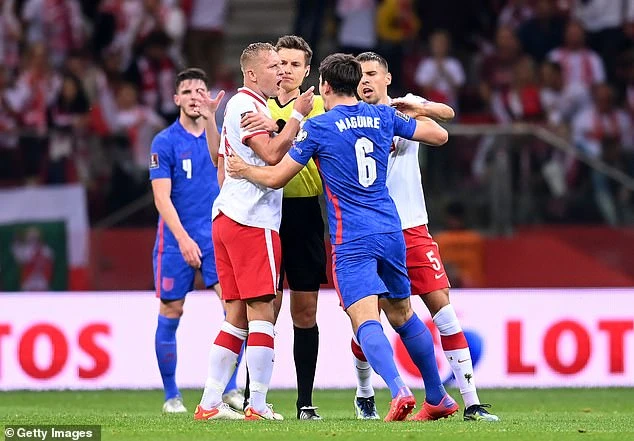FA sẽ vào cuộc điều ra tình huống xô xát giữa trung vệ Harry Maguire và Kamil Glik bên phía Ba Lan. Ảnh: Getty Images.