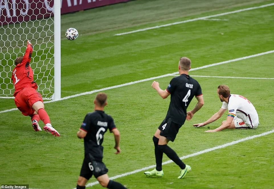 Harry Kane muốn đánh bại Ukraina để tri ân CĐV xấu số không may qua đời, khi ăn mừng bàn thắng đầu tiên của anh tại Euro. Ảnh: Getty Images.