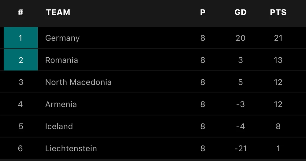 Với kết quả đánh bại Macedonia 4-0, tuyển Đức chính thức giành vé tham dự World Cup 2022 khi có được vị trí đầu bảng J với 21 điểm sau 8 vòng đấu. Tấm vé còn lại của bảng đấu này sẽ là sự cạnh tranh gay gắt của ba đội tuyển Romania, Macedonia và Armenia.