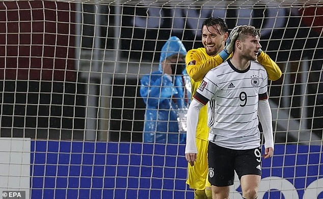 Timo Werner lập cú đúp trong chiến thắng 4-0 trước Macedonia và được HLV Hansi Flick dành nhiều lời khen. Ảnh: EPA.