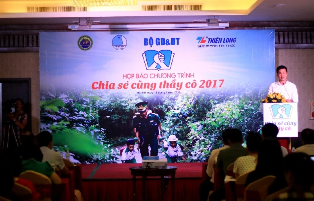 Ngày 11-7, tại Hà Nội, Trung ương Hội Liên hiệp Thanh niên Việt Nam phối hợp với Bộ GD&ĐT, Bộ Tư lệnh Bộ đội biên phòng, Ban Thanh niên quân đội, Tập đoàn Thiên Long tổ chức họp báo giới thiệu chương trình “Chia sẻ cùng thầy cô” năm 2017.