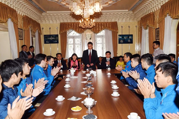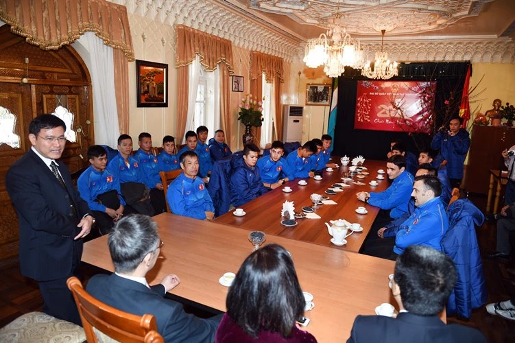 Sáng ngày 4-1 đội tuyển Futsal Việt Nam được hân hạnh khi Đại Sứ quán Việt Nam tại Taskent mời đến Tòa Đại Sứ để viếng thăm và nhận những lời chúc mừng tết cũng như mong mỏi thành tích đạt được của tuyển Futsal Việt Nam từ Đại Sứ Đặc mệnh Toàn quyền của Việt Nam tại Uzbekistan Phạm Văn Thảo.