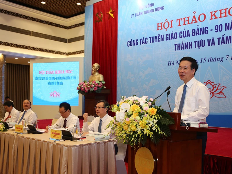Ngày 15-7, tại Hà Nội, Ban Tuyên giáo Trung ương đã chủ trì, phối hợp với Hội đồng Lý luận Trung ương, Học viện Chính trị quốc gia Hồ Chí Minh tổ chức hội thảo “Công tác tuyên giáo của Đảng - 90 năm chặng đường vẻ vang: Thành tựu và tầm nhìn”.