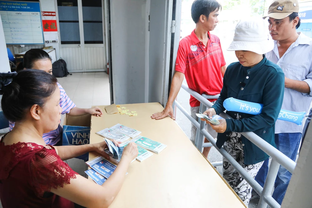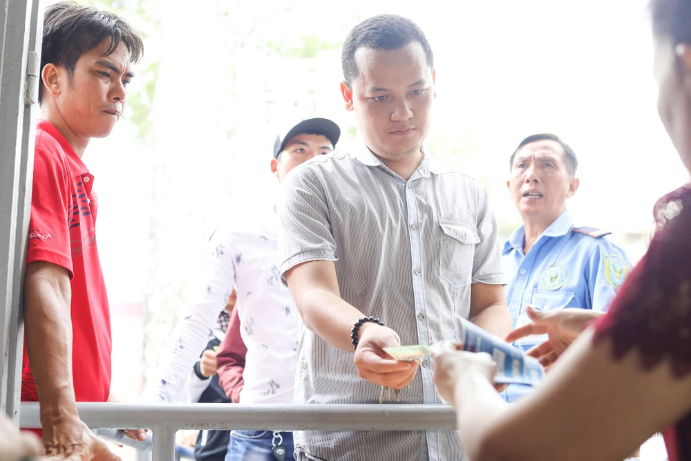 Dòng người xếp hàng tại quầy vé ngay trước cổng chính sân Thống Nhất