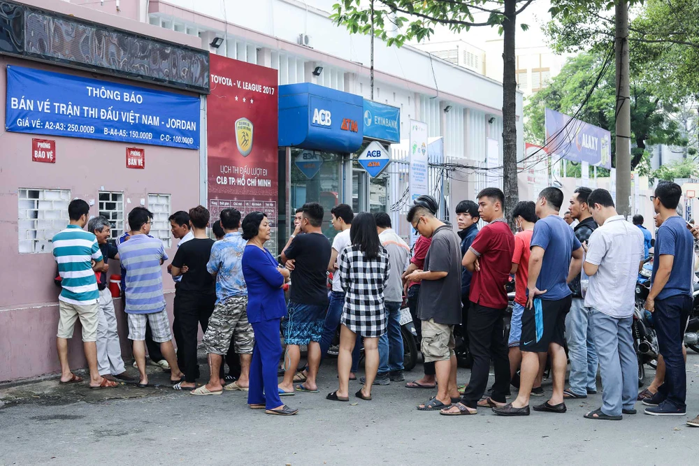 Trong khi đó vé bán xem trận tuyển Việt Nam - Jordan này đã mở bán từ sáng nay. Theo ghi nhận của phóng viên thì buổi đầu mở bán đã có… sốt nhẹ. Hàng trăm người sắp hàng mua vé để được xem trận đấu quan trọng trong khuôn khổ vòng loại Asian Cup 2019 này.