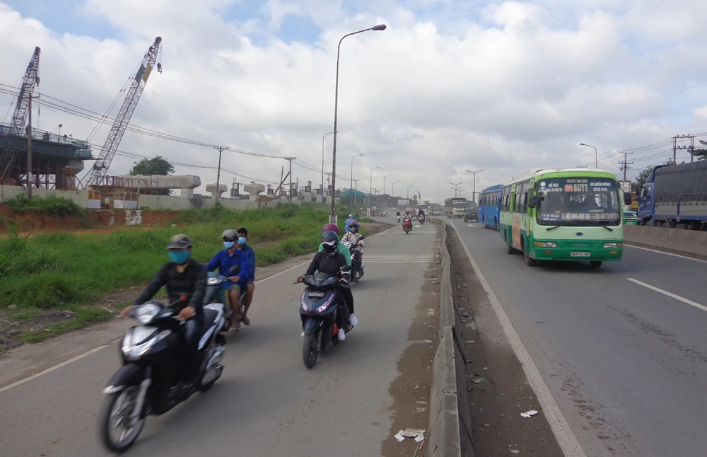 Đoạn metro băng qua xa lộ Hà Nội đế nối vào ga Suối Tiên (bên tay trái) sẽ được thi công theo cách đặc biệt để không ảnh hưởng tới giao thông trên Xa lộ Hà Nội và tiến độ thi công của nút giao - hầm chui ĐH Quốc gia.