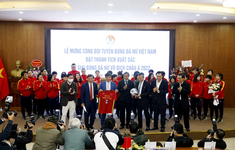 Phát biểu tại buổi lễ, Quyền chủ tịch VFF Trần Quốc Tuấn nhấn mạnh: “Việc đội tuyển nữ Việt Nam có thành tích tốt tại giải bóng đá nữ vô địch châu Á 2022, qua đó giành quyền dự World Cup là kỳ tích tuyệt vời. Đây là đội tuyển thứ ba của bóng đá Việt Nam dự World Cup sau đội tuyển U-20 Việt Nam và đội tuyển futsal Việt Nam. Họ chính là niềm tự hào của những người làm bóng đá Việt Nam trong quá trình phát triển.