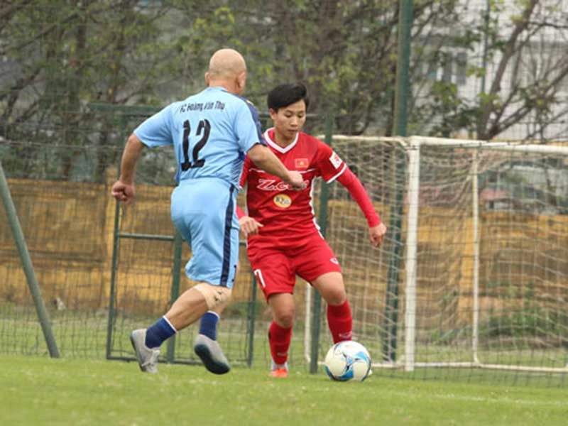 Quân xanh của các học trò ông Mai Đức Chung là đội bóng “phủi” FC Hoàng Văn Thụ đến từ tỉnh Thái Nguyên. Những cầu thủ nam tuy không chơi bóng đá chuyên nghiệp nhưng có thể hình cao lớn đồng đều và một lối chơi đầy sức mạnh. Các đàn anh là đối thủ cứng cựa giúp các cô gái đá bóng Việt Nam rèn luyện đầy hào hứng và vùi dập đến 6-1.
