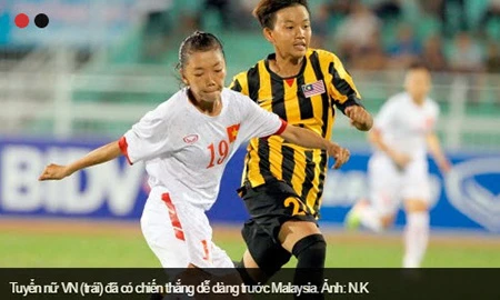 Trở lại với trận đấu gặpMalaysia, tuyển nữ VN không quá khó khăn để tìm được bàn thắng mở tỉ sốtừ rất sớm. Phút 1, từ pha treo bóng chính xác bên cánh trái của đồng đội, Huỳnh Như khống chế bóng gọn gàng trước khi dứt điểm hạ gục thủ thành Malaysiađưa tuyển nữVNvượt lên dẫn trước.