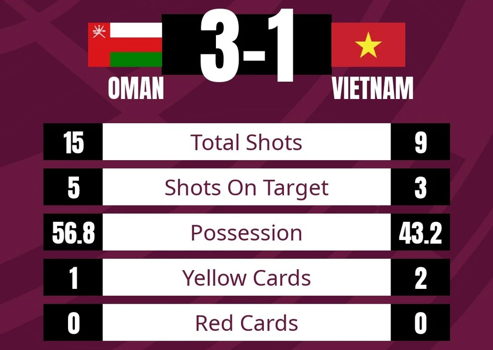 Trận lượt đi, đội tuyển Việt Nam từng thua ngược Oman với những thông số chuyên môn kém hơn đội bạn. Ảnh: AN.