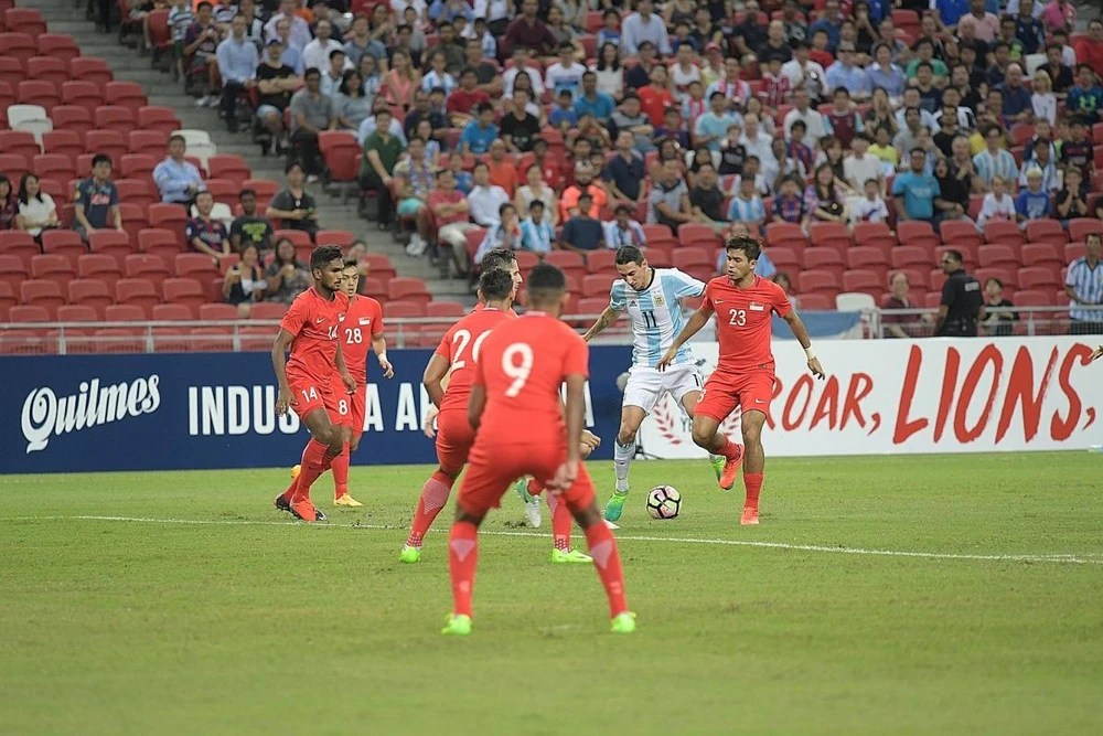 Tuyển Singapore (đỏ) hiện bị dư luận ví là "sư tử không nanh vuốt".