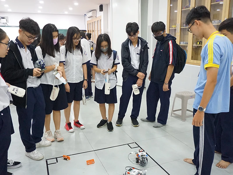 Hiểu rõ những lo lắng của HS trong việc lựa chọn NV, sáng 25-5, sau khi liên hệ với Trường THPT Nguyễn Hữu Thọ (quận 4) và THPT Lương Thế Vinh (quận 1), Trường THCS Minh Đức (quận 1) đã đưa HS đến tìm hiểu mô hình học tập.