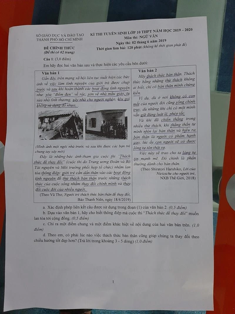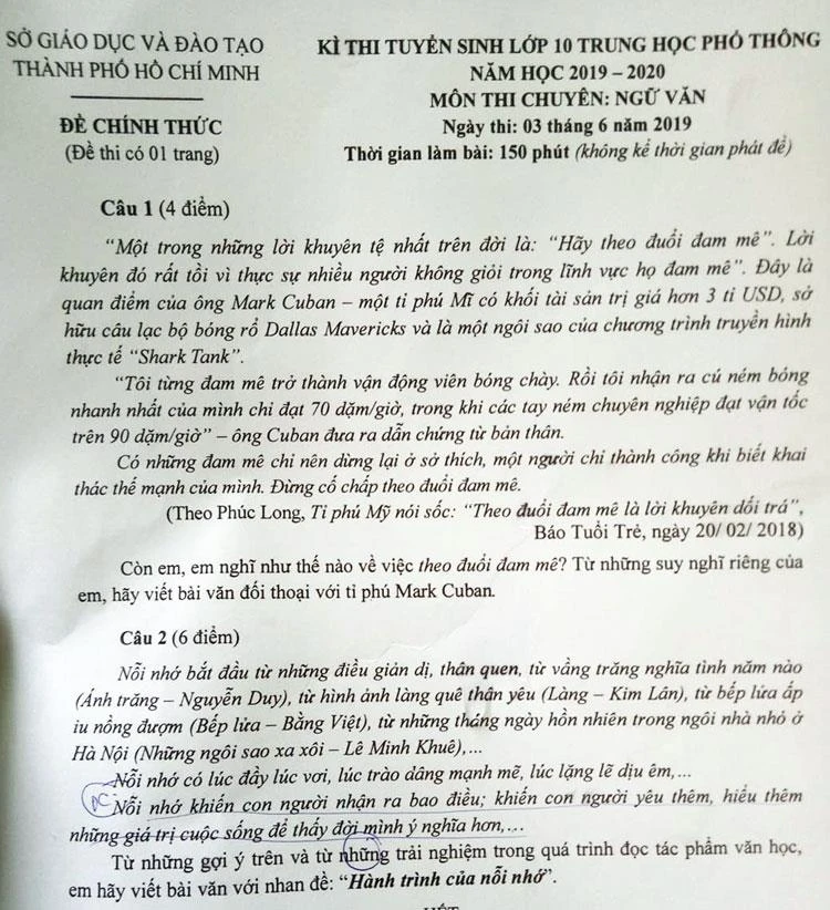 Đề thi Ngữ văn tuyển sinh 10 TP.HCM.