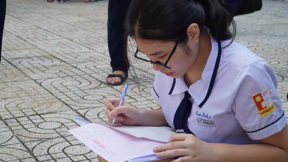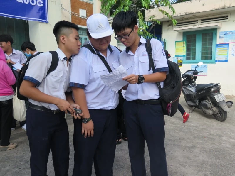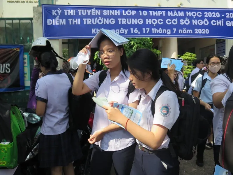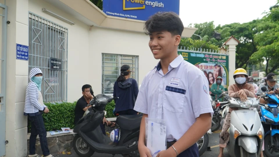 Sau 60 phút làm bài thi tiếng Anh, nhiều TS tại điểm thi trường THCS Ngô Chí Quốc, quận Thủ Đức tỏ ra phấn khởi à cho biết đề thi không khó như năm trước. Em Viễn Trí tại điểm thi này cho biết đề có 36 câu. Em làm được chắc chắn 6 điểm vì đề không nặng kiến thức khó, ít từ mới. Các câu về ngữ pháp đều là những cấu trúc mà em đã được ôn tạp ở lớp và tham khảo ôn trên mạng. Riêng phần viết lại câu em không chắc chắn vì thời gian làm bài hơi ngắn.
