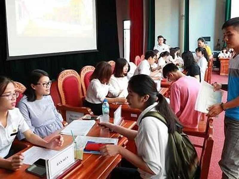 Các tân sinh viên làm thủ tục nhập học vào Học viện Tòa án, Hà Nội. (Ảnh do học viện cung cấp)