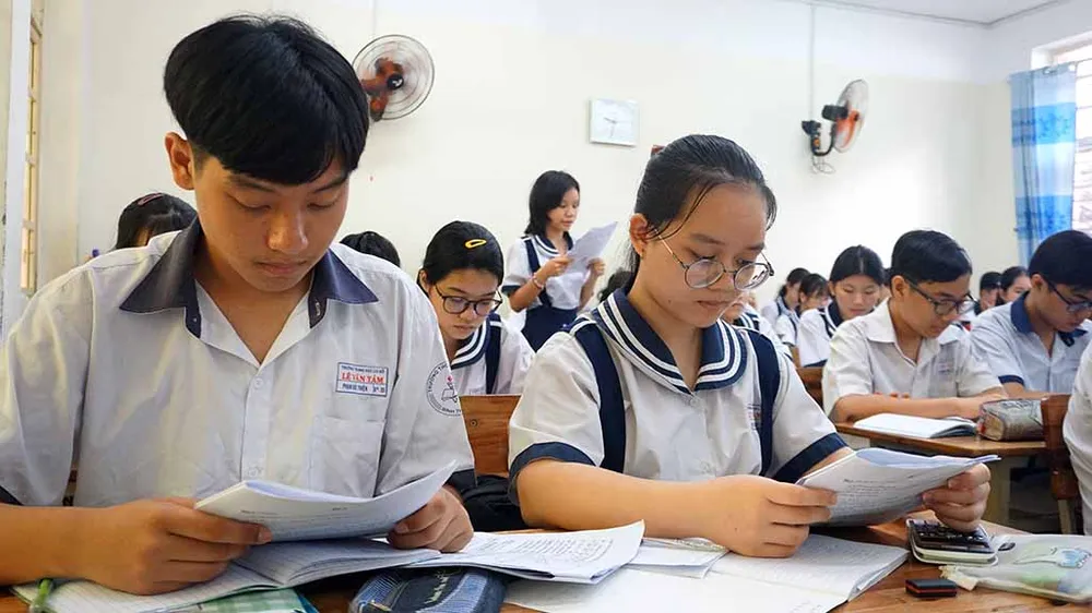 Thầy Nguyễn Kim Hùng, giáo viên Trường THCS Lữ Gia, quận 11, chia sẻ thêm kỳ thi tuyển sinh vào lớp 10 năm nay có sự thay đổi khi không còn nhân hệ số 2 môn văn, toán như trước. Vì thế, nhà trường khuyến khích các em phải học đều cả ba môn như vậy mới đạt được NV của các em.
