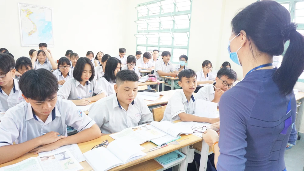 Học sinh lớp 9 trường THCS Hồ Văn Long, quận Bình Tân trong 1 tiết học. Ảnh: NGUYỄN QUYÊN