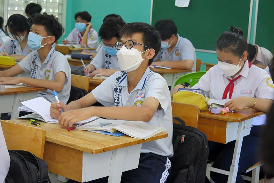 Học sinh lớp 9 Trường THCS Lạc Hồng (quận 10, TP.HCM) trong một giờ học.