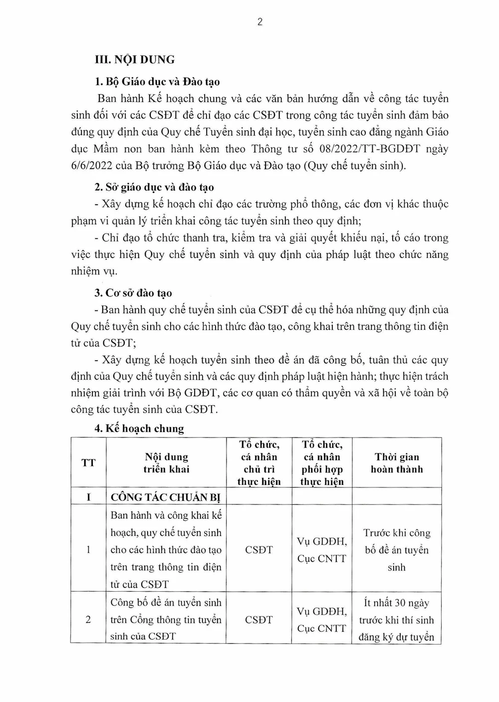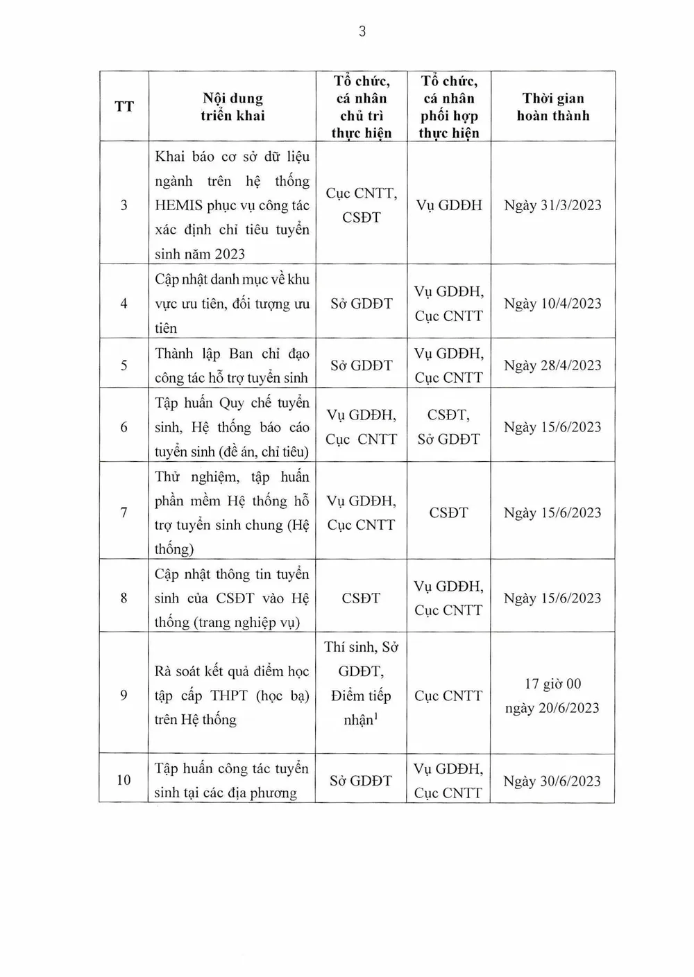 Việc công bố đề án tuyển sinh trên Cổng thông tin tuyển sinh ít nhất 30 ngày trước khi thí sinh đăng ký dự tuyển. Ngày 31-3, các trường khai báo cơ sở dữ liệu ngành trên hệ thống HEMIS phục vụ công tác xác định chỉ tiêu tuyển sinh năm 2023.