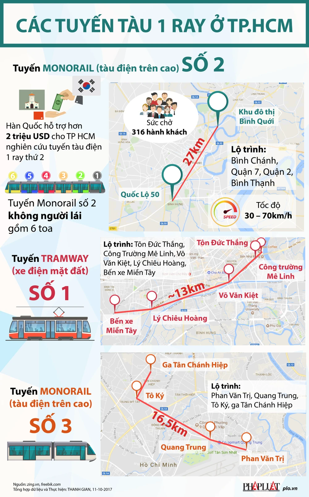 (PLO)- Tuyến tàu điện 1 ray số 2 dài 27 km, từ quốc lộ 50 (huyện Bình Chánh) nối khu đô thị Bình Quới (quận Bình Thạnh) dự kiến xây dựng cuối năm 2020.