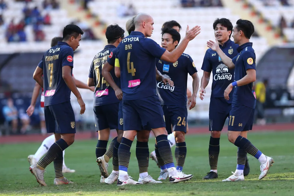 Tuyển Thái Lan mặc đồng phục màu xanh. Ảnh: S.S