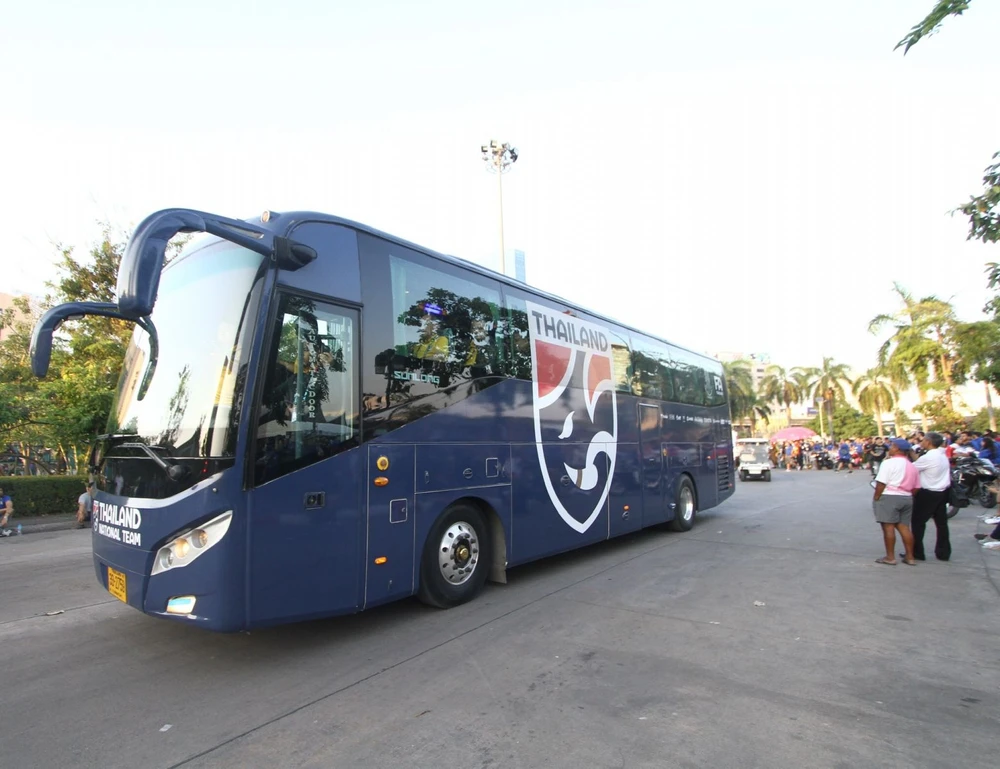 Chiếc xe buýt chở tuyển Thái Lan vào sân Rajamangala