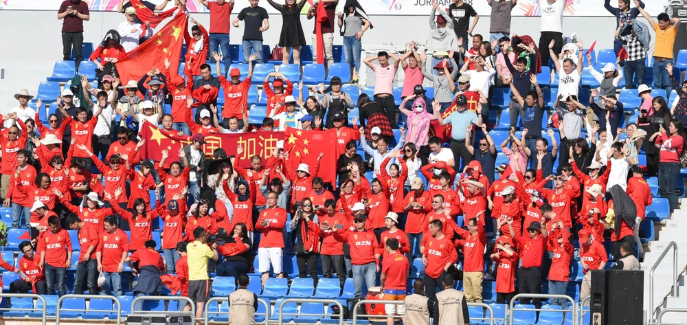 Cổ động viên Trung Quốc cổ vũ đội nhà.