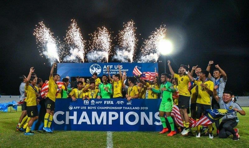 U-15 Malaysia đánh bại U-15 Thái Lan đăng quang trên đất Thái. Ảnh: FAT