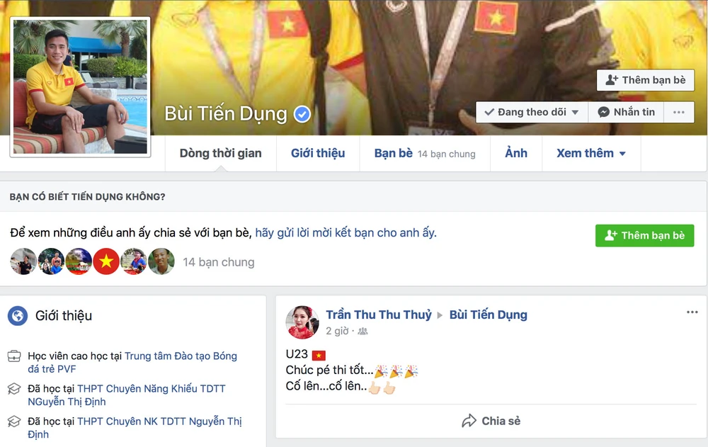 ... Bùi Tiến Dụng và hàng loạt đồng đội như Hà Đức Chinh, Đoàn Văn Hậu, Nguyễn Quang Hải đã được Facebook gắn dấu hiệu định danh.