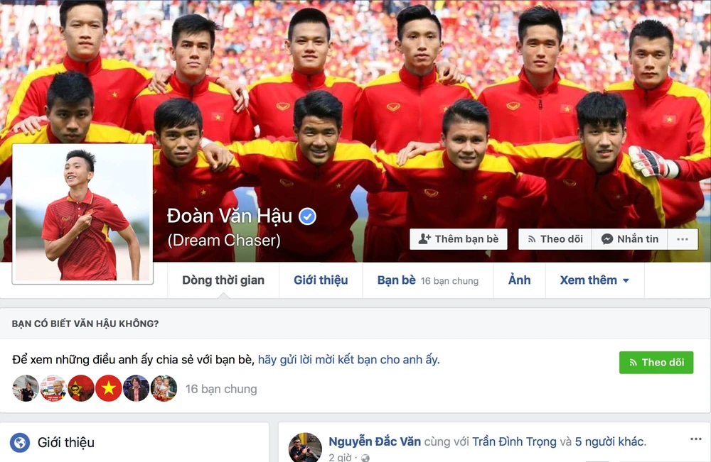 Nhằm tránh tình trạng tên tuổi các tuyển thủ U-23 bị lợi dụng, sau ngày 25-1 người hâm mộ sẽ dễ dàng tìm thấy trang cá nhân của anh em Tiến Dũng -Tiến Dụng, Nguyễn Quang Hải, Hà Đức Chinh, Đoàn Văn Hậu, hay tiền vệ Lương Xuân Trường… đã được Facebook xác thực tài khoản.