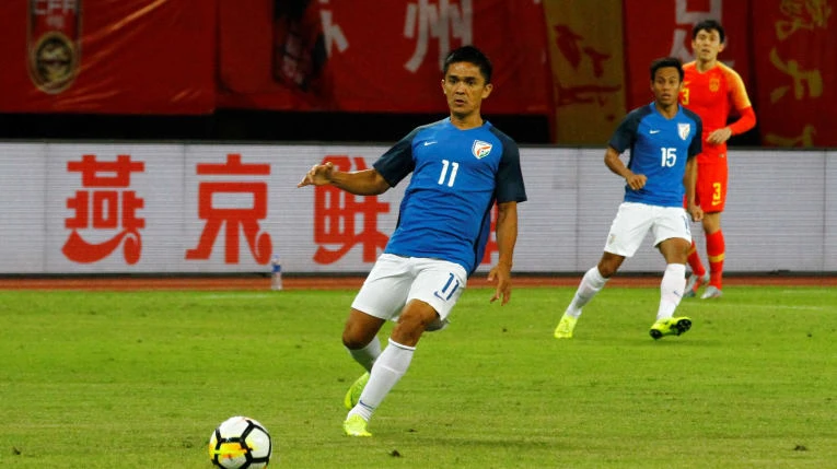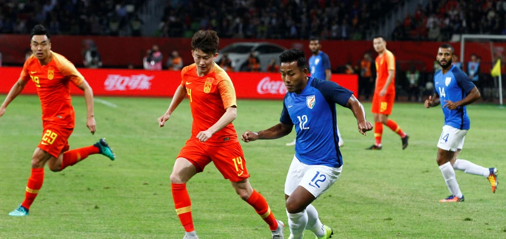 Không những tuyển Trung Quốc tiếp đội bóng “vô danh” Ấn Độ trên sân nhà không thể thắng nổi mà còn suýt thua bởi đường chuyền của danh thủ Ấn Độ Sunil Chhetri cho đồng đội Pronay Halder nhưng cầu thủ này dứt điểm kém.