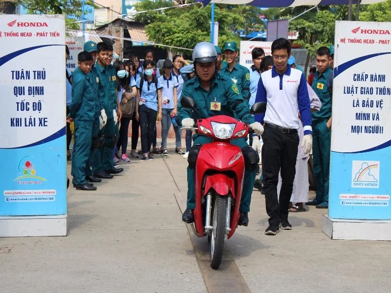Tham gia trò chơi kỹ thuật giữ xe thăng bằng tại ngày Pháp luật 9-11.