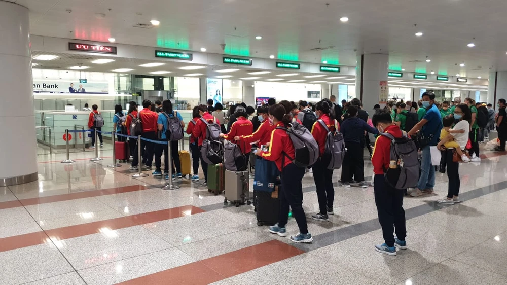 ... sau chuyến bay chung với tuyển nữ Việt Nam. Ảnh: AN