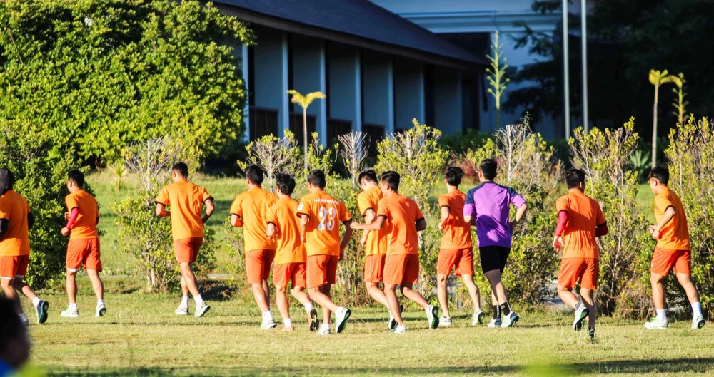 Sau màn khởi động làm nóng, các tuyển thủ chạy 15 phút vòng quanh khuôn viên khách sạn.