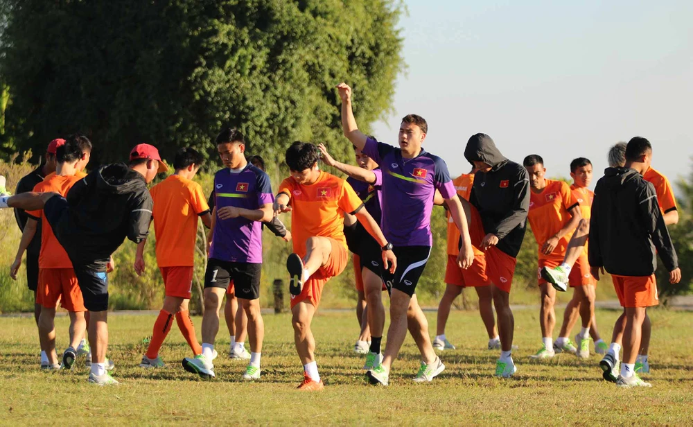 Việc chuyển từ thời tiết nắng nóng tại Yangon sang tiết trời se lạnh tại Nay Pyi Taw ít nhiều ảnh hưởng đến cầu thủ. Do tinh thần thoải mái khi Việt Nam đã chắc suất vào bán kết, suốt buổi tập luôn đầy ắp tiếng cười và những liệu pháp thả lỏng giúp cầu thủ thư giãn.