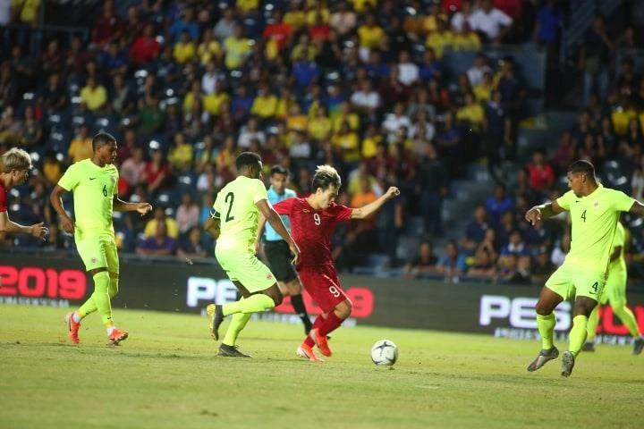 Tuy nhiên cuối cùng rồi Việt Nam cũng có pha phối hợp đẹp với cú nhá làm động tác giả của Quang Hải thu hút hậu vệ đối phương rồi Đức Huy dễ dàng dứt điểm san bằng 1-1 cho Việt Nam.