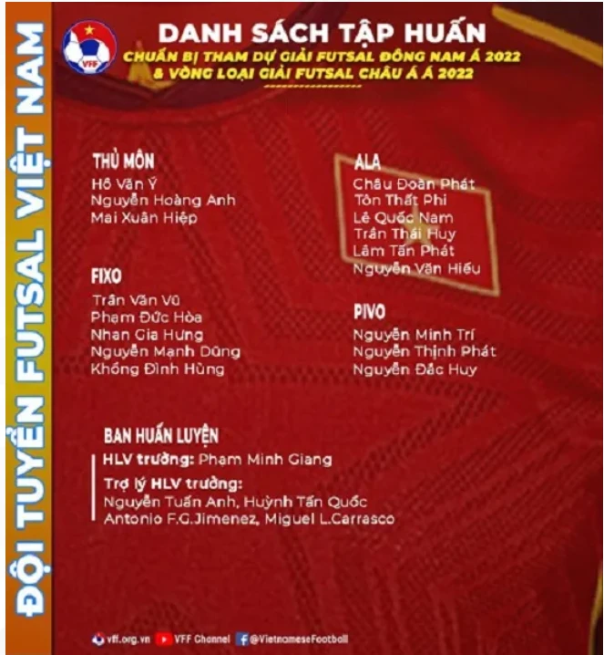 Danh sách tuyển Futsal VN dự giải Vô địch Đông Nam Á.