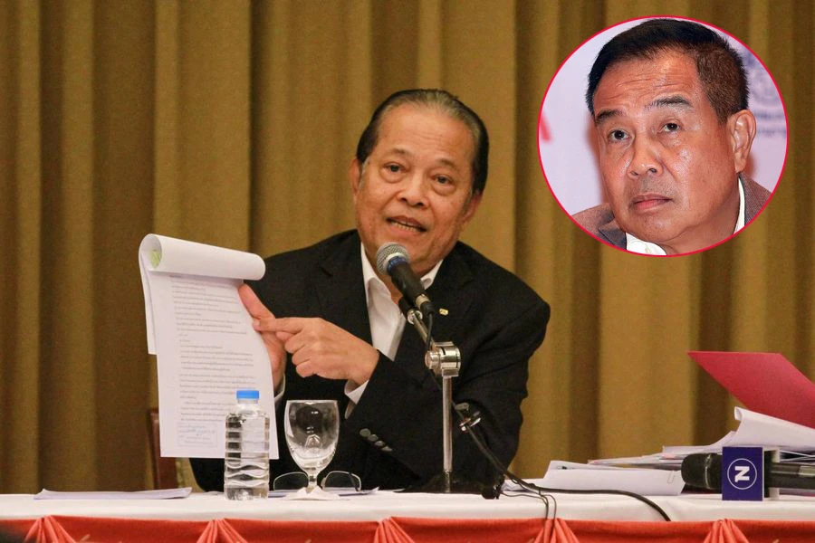 Hai ứng viên tranh ghế chủ tịch FAT Worawi Makudi và chủ tịch đương nhiệm Somyot (ảnh nhỏ). ẢNH: FOX