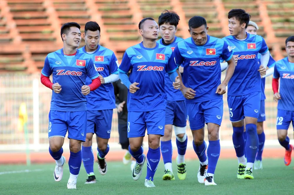 Tuyển Việt Nam tập nhẹ chừng một giờ đồng hồ. Sau ít vòng làm nóng quanh sân, đội chia hai nhóm đá đối kháng “một-hai chạm” chừng 30 phút rồi thả lỏng và ra về. Còn buổi tập của đội khách thì không ai biết được.