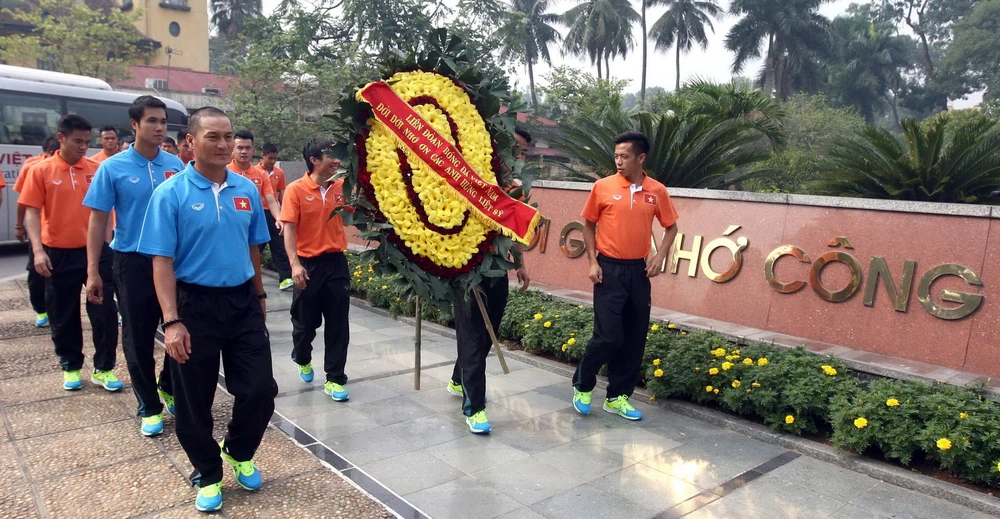 Toàn bộ BHL và tuyển thủ VN mang theo vòng hoa đến viếng và thắp hương tưởng niệm các anh hùng liệt sĩ Bắc Sơn.