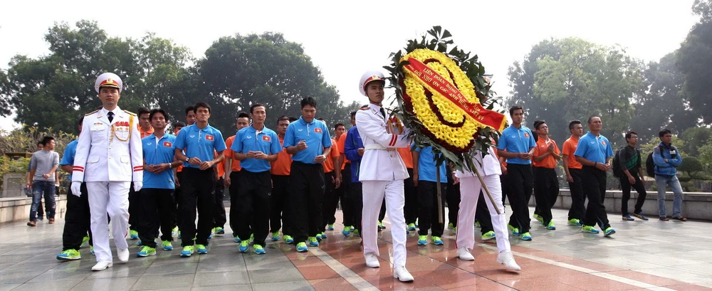 Tuyển thủ Việt Nam dâng hương tại nhà đại tướng.
