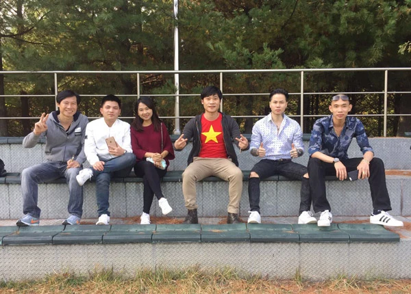 Một số CĐV Việt Nam là du học sinh tại Hàn Quốc đến sân Paju xem đội tuyển quốc gia thi đấu.
