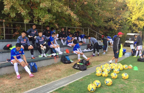 Ngày 25-10, đội tuyển Việt Nam chơi trận giao hữu thứ hai gặp ĐH Jeonju cũng trên sân của Trung tâm huấn luyện Paju.